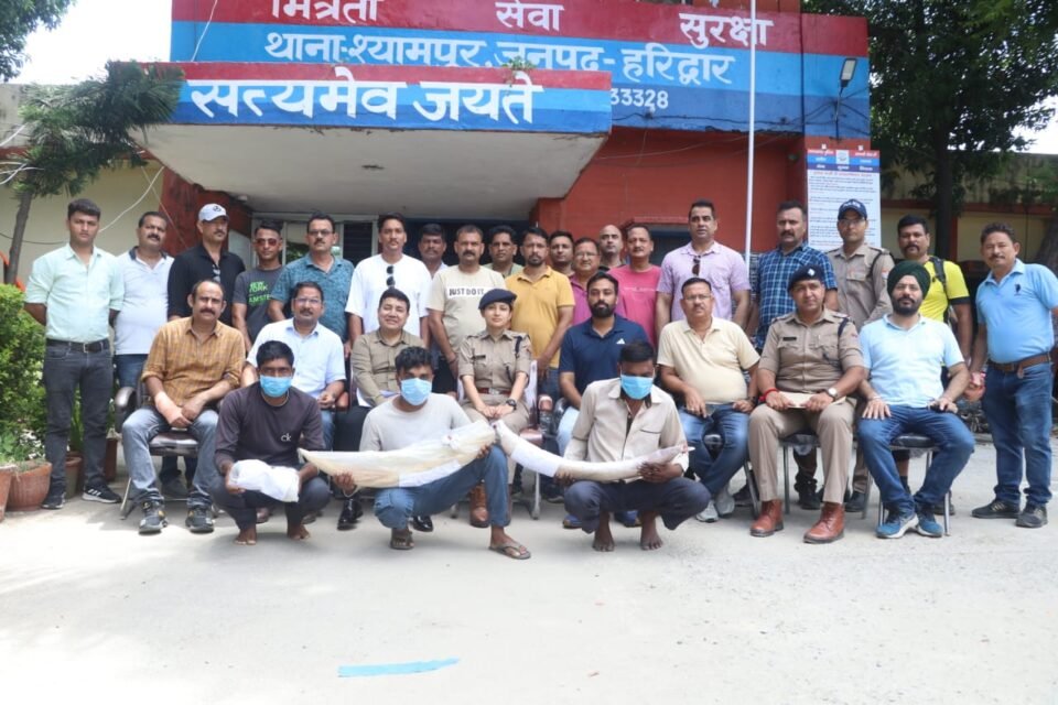 राज्य में वन्य जीव अंगो की अवैध तस्करी में लिप्त तस्करों की अवैध गतिविधियों की रोकथाम व धरपकड़ हेतु अपर पुलिस महानिदेशक श्री ए. पी. अंशुमान, अपराध एवम् कानून व्यवस्था उत्तराखंड पुलिस द्वारा हाल ही में अपनी गोष्ठी में एसटीएफ को कार्यवाही करने के निर्देश दिए गए थे जिसके अनुक्रम में एसएसपी एसटीएफ श्री आयुष अग्रवाल द्वारा अपनी टीमों को निर्देशित किया गया था|* इसी क्रम में *सीओ एसटीएफ श्री आर0बी0चमोला के नेतृत्व में उत्तराखण्ड एसटीएफ, तराई केन्द्रीय वन प्रभाग रुद्रपुर व थाना श्यामपुर की संयुक्त टीम द्वारा एक ज्वांइट ऑप्रेशन में कल शाम थाना श्यामपुर जनपद हरिद्वार क्षेत्र से 02 अन्तर्राज्यीय वन्यजीव तस्कर गौतम सिंह व चन्दन सिंह निवासीगण कामगारपुर, थाना मण्डावली जिला बिजनौर उ0प्र0 को गिरफ्तार कर उसने कब्जे से 01 अदद हाथी दांत ( वजन करीब 07 किलो) बरामद किया।* तत्पश्चात दोनों तस्करों से विस्तृत पूछताछ के उपरान्त ग्राम नौरंगाबाद श्यामपुर निवासी जितेन्द्र सिंह को देर रात्रि दूसरे हाथीदाँत के साथ श्यामपुर क्षेत्र से ही गिरफ्तार किया गया। गिरफ्तार तस्कर लम्बे समय से वन्यजीव अंगो की तस्करी में लिप्त थे , एसटीएफ की इस कार्यवाही में मुख्य आरक्षी महेन्द्र गिरि व मुख्य आरक्षी किशोर कुमार की विशेष भूमिका रही।