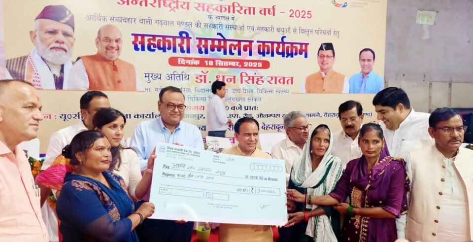 यह बात प्रदेश के सहकारिता मंत्री डॉ धन सिंह रावत ने आज अंतरराष्ट्रीय सहकारिता वर्ष-2025 के उपलक्ष्य में उत्तराखंड राज्य सहकारी संघ द्वारा निरंजनपुर सहकारी क्षेत्रीय कार्यालय में आयोजित सहकारी सम्मेलन में कही। “आर्थिक व्यवहार और सहकारी संस्थाएँ” थीम पर आयोजित कार्यक्रम में डॉ रावत ने कहा कि उत्तराखंड राज्य सहकारी संघ वर्तमान में 500 करोड़ रुपये के टर्नओवर के साथ राज्य की शीर्ष सहकारी संस्था है, और संघ ने अब 3 हजार करोड़ टर्नओवर का लक्ष्य तय किया है। इसके लिये संघ ने प्रदेशभर में नई व्यापारिक गतिविधियों का संचालन करेगा। इसके तहत सहकारी संघ जल्द ही हरिद्वार जनपद में मिनरल वाटर प्लांट की स्थापना करेगा और बाजार में ‘हिमाला जल’ नाम से बोतलबंद पानी लांच करेगा। इसके अलावा ऑर्गेनिक बायो-फर्टिलाइज़र निर्माण व फिनाइल उत्पादन इकाई की भी स्थापना की जायेगी। साथ ही प्रदेशभर में 500 सहकारी क्रय केंद्रों की स्थापना की भी योजना है। डॉ रावत ने कहा कि इन क्रय केंद्रों में किसानों को उनके अनाज, फल एवं सब्जियों का उचित मूल्य सीधे गाँव स्तर पर उपलब्ध होगा। इस व्यवस्था से बिचौलियों की भूमिका समाप्त कर लाभ सीधे किसानों तक पहुँचाने का लक्ष्य है
