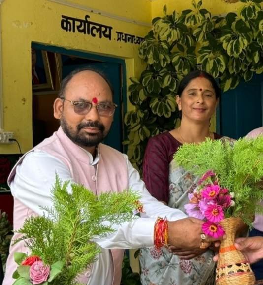 थराली विधायक भूपाल राम टम्टा ने सहायक अध्यापिका कुसुमलता गढ़िया का स्वागत किया