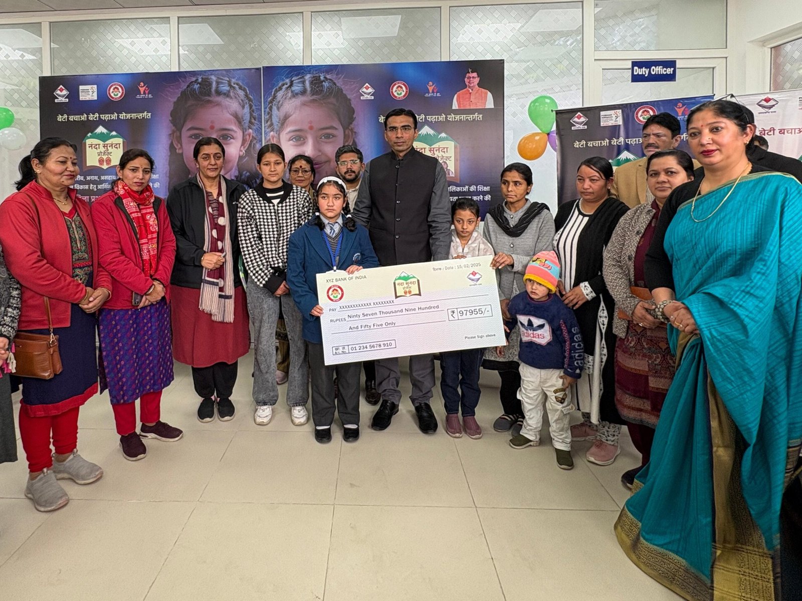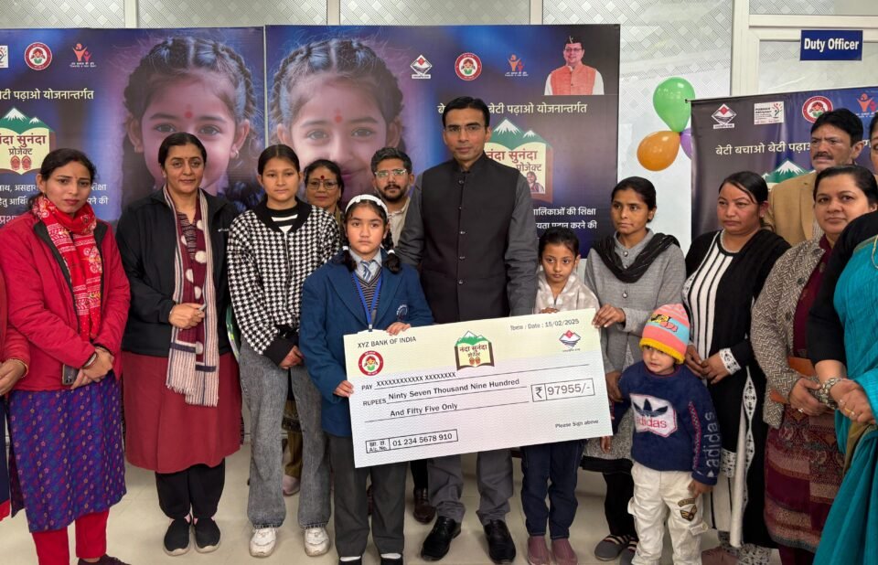 जनपद में प्रोजेक्ट ‘नंदा-सुनंदा’ के तहत आज जिलाधिकारी सविन बंसल एवं मुख्य विकास अधिकारी अभिनव शाह ने 03 बालिकाओं को संयुक्त रूप से रू0 97955 की धनराशि का चौक वितरण किया। जिसमें अस्मित कौर, त्रिशा कण्डारी और खुशबू शामिल है। इन बालिकाओं का चयन उनकी विषम परिस्थितियों और गरीबी को देखते हुए किया गया। बालिका अस्मित कौर को कक्षा-4 की पढ़ाई जारी रखने के लिए स्चुलेर हेइम विद्यालय देहरादून के खाते में रु0-12250 की धनराशि प्रदान की गई। बालिका त्रिशा कण्डारी को कक्षा-7 की पढ़ाई के लिए न्यू दून ब्लोसम स्कूल देहरादून में प्रवेश हेतु रु0-63480 की धनराशि और बालिका खुशबू को श्री गुरू राम राय विश्व विद्यालय से बीएसी की पढ़ाई के लिए रु0-22225 की आर्थिक सहायता धनराशि विद्यालय के खाते में डाली गई।
