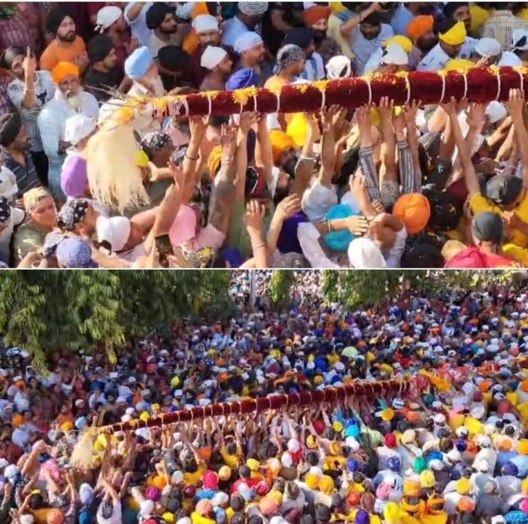 इस दौरान गुरू महाराज के जयकारों से पूरा वातावरण गूंज रहा था। झंडेजी के आरोहण के सजीव प्रसारण के लिए विभिन्न स्थानों पर पांच एलईडी स्व्रफीन लगायी गयी थी तथा दरबार साहिब के यूटयूब व फेसबुक पेज पर भी सीधा प्रसारण दिखाया जा रहा था। दोपहर तीन बजे से संगतों ने बल्लियों की कैंची बनाकर झंडे जी का आरोहण शुरू किया।