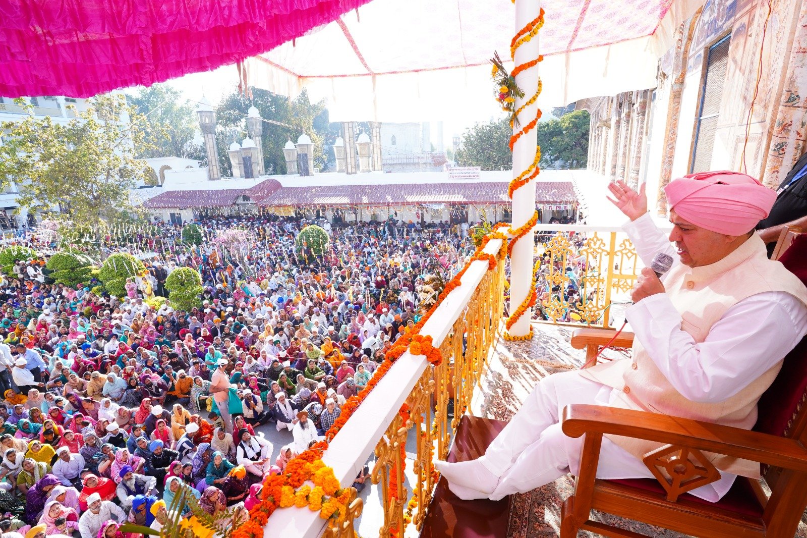 श्री महाराज जी ने संगतों को दर्शन दिए व आशीर्वाद दिया। श्री महाराज जी ने संगतों को आदर्श जीवन जीने के लिए गुरु की वाणी का अमृतपान करवाया। उन्होंने कहा कि किसी भी दृष्टि से गुरु महाराज को भजो, आपको उसका पुण्य अवश्य प्राप्त होगा। मानव जीवन में कर्म का बहुत महत्व है। मनुष्य की पहचान उसके कर्मों से होती है। उन्होंने जन्म-मृत्यु के बंधन से मुक्ति व मोक्ष के रहस्य का ज्ञान भी दिया। उन्होंने सुख शांति का संदेश एवम् गुरु मंत्र देते हुए गुरु महिमा के महत्व से आत्मसात करवाया।