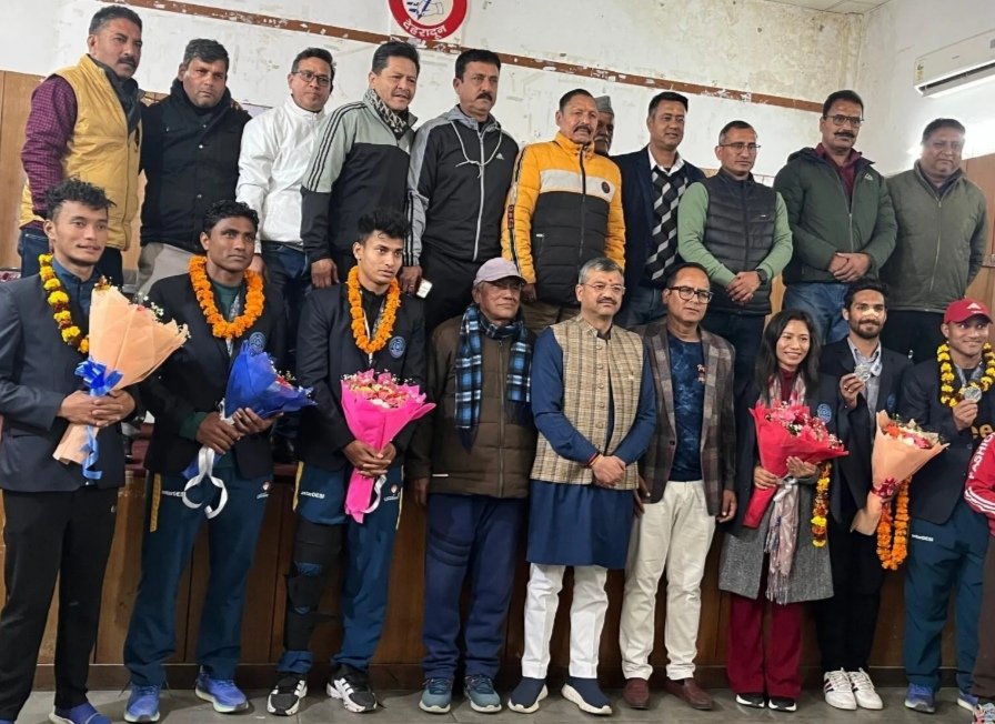 देहरादून, 38वें राष्ट्रीय खेलों में उत्तराखंड की फुटबॉल टीम ने रजत पदक जीतकर प्रदेश का नाम रोशन किया है। देहरादून फुटबॉल एसोसिएशन ने नेशनल गेम्स में उत्तराखंड फुटबॉल टीम के रजत पदक जीतने खिलाड़ियों को सम्मानित किया। उत्तरांचल प्रेस क्लब में आयोजित सम्मान समारोह में बतौर मुख्य अतिथि देहरादून के महापौर सौरभ थपलियाल मौजूद रहे। मेयर ने एसोसिएशन को आश्वस्त किया कि फुटबॉल के विकास एवं संरक्षण के लिए वे हमेशा उपलब्ध रहेंगे, जिससे युवाओं को खेल के लिए आकर्षित किया जा सके। इस अवसर पर उत्तराखंड टीम के खिलाड़ी शैलेन्द्र नेगी, शशांक राना, अभिषेक रावत, शेर सिंह बोरा, अक्षय थापा, वीरेंद्र पांडे एवं उत्तराखंड स्नो गर्ल से विख्यात मेनका गुंजियाल रावत को सम्मानित किया गया। इस अवसर पर कार्यक्रम की अध्यक्षता दिलबर सिंह बिष्ट ने की। फुटबॉल एसोसिएशन ऑफ देहरादून के सचिव राजेंद्र सिंह रावत, उपाध्यक्ष प्रवीण फरासी, कोषाध्यक्ष राहुल रावत, पुष्कर गोसाईं, रमेश राणा, गोविंद बिष्ट, अनूप राना, रेफरी एसोसिएशन के अध्यक्ष सतीश कुलाश्री आदि उपस्थित रहे।