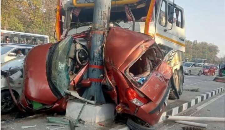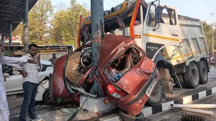 लच्छीवाला टोल पर ट्रक ने कार को बुरी तरह पिचका दिया