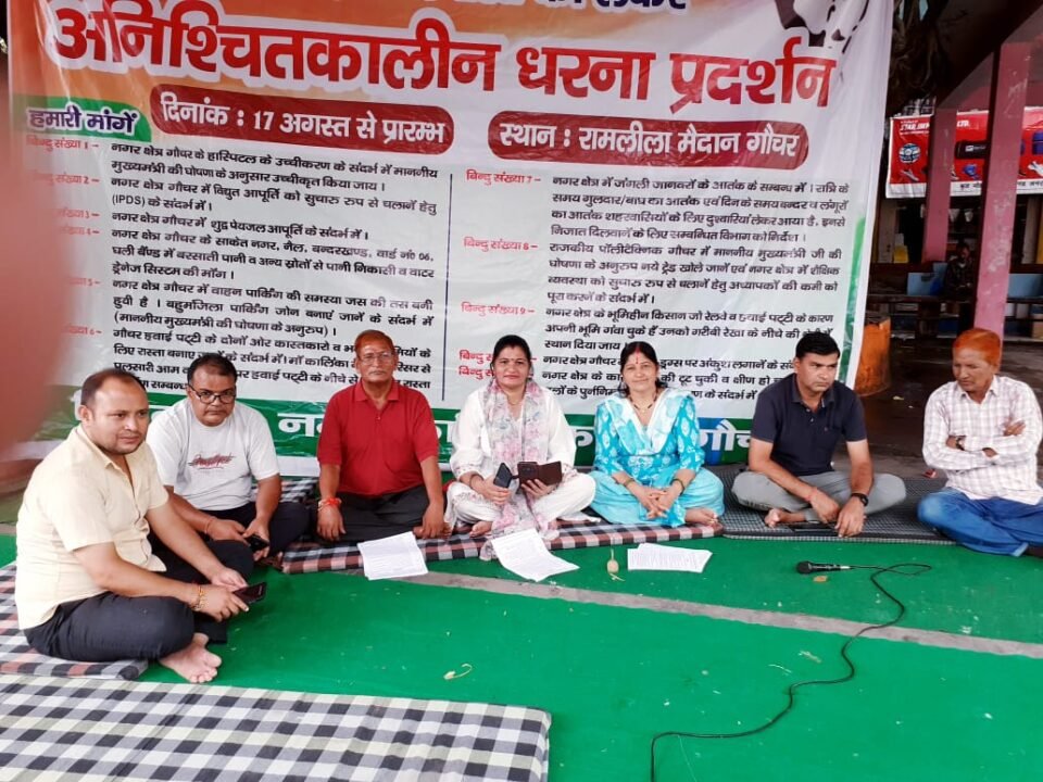 गौचर नगर क्षेत्र की एंव नगर क्षेत्र गौचर से जुडे़ गांवों रानीगढ पट्टी,सारी, बिजराकोट, दशजूला क्षेत्र,रानौ,क्वीठी,काण्डा,तोली,गैलुग,बमोथ,सूगी,करछूना,कुमेडा,गडूना, सरमोला,आदि की समस्याओं के निराकरण हेतु 16 सूत्रीय मागों को लेकर नगर कांग्रेस कमेटी गौचर के नेतृत्व में चल रहे आन्दोलन आठवें दिन में प्रवेश कर गया लेकिन शासन प्रशासन की ओर से आन्दोलन कारियों की सुध लेने कोई नही आया। बक्ताओं का कहना है कि पूर्ववर्ती उत्तराखण्ड कांग्रेस सरकार के कार्यकाल में गौचर अस्पताल का उच्चीकरण अति प्राथमिक स्वास्थ्य केन्द्र से सामुदायिक स्वास्थ्य केन्द्र के रुप में उच्चीकरण किया लेकिन प्रदेश में सरकार के बदलने के तुरन्त बाद भाजपा सरकार ने फिर से गौचर के सामुदायिक स्वास्थ्य केन्द्र को फिर अति प्राथमिक स्वास्थ्य केन्द्र बनाया गया और कुछ समय बाद प्रदेश के माननीय मुख्यमंत्री गौचर मेले में उच्चीकरण की घोषणा करते हैं लेकिन आगे कोई काम नही होता केवल व केवल कोरी घोषणा से नगर क्षेत्र गौचर और गौचर से लगे ग्रामीण अपने आप को ठगा महसूस कर रहे है।