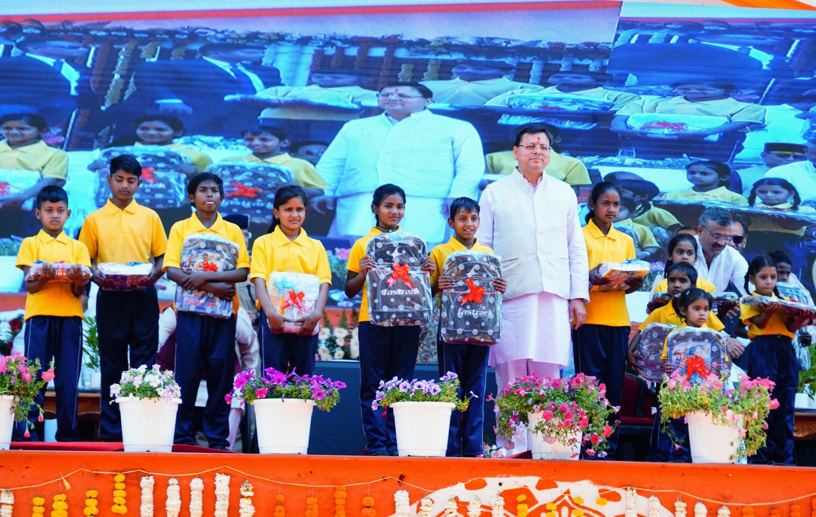 कार्यक्रम के दौरान बाल भिक्षावृति निवारण प्रयास के अन्तर्गत इंटेन्सिव केयर सेंटर साधूराम इण्टर कॉलेज देहरादून में प्रवेशरत शिक्षा की मुख्यधारा से जुड़े 13 बच्चों को सम्मानित किया गया। लखवाड़ बहुद्देशीय परियोजना के तहत अधिग्रहित की गई भूमि के भू स्वामियों को अनुग्रह अनुदान के रूप में कुल 10 करोड़ की धनराशि वितरित की गई। अटल आवास योजना के तहत लाभार्थियों को मुख्यमंत्री ने चेक और चाबी सौंपी। राज्य सरकार की विभिन्न जनकल्याणकारी योजनाओं से लाभार्थियों को लाभान्वित किया गया और सराहनीय कार्य करने वालों को प्रशस्ति पत्र भी प्रदान किये।कार्यक्रम के दौरान सरकार के 03 वर्ष पूरे होने पर कलाकारों द्वारा राज्य की संस्कृति पर आधारित सांस्कृतिक प्रस्तुतियां भी दी गई। इससे पहले मुख्यमंत्री ने सरकार के 03 वर्ष पूरे होने पर कनक चौक से परेड ग्राउंड तक रोड शो में प्रतिभाग किया और विभिन्न स्टॉल का अवलोकन भी किया।