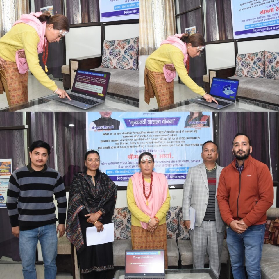 देहरादून, महिला सशक्तिकरण एवं बाल विकास मंत्री रेखा आर्या ने मुख्यमंत्री वात्सल्य योजना के तहत लाभार्थियों को 3 करोड़ 5 लाख रुपए से ज्यादा की धनराशि जारी की।