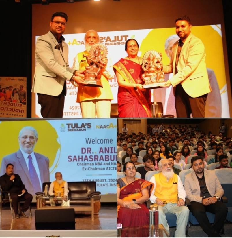 देहरादून, तुलाज़ इंस्टिट्यूट ने आज कॉलेज परिसर में आयोजित स्टूडेंट इंडक्शन प्रोग्राम के दौरान एनएएसी और एनबीए के अध्यक्ष और एआईसीटीई के पूर्व अध्यक्ष प्रो. डॉ. अनिल सहस्रबुद्धे और उनकी पत्नी माधुरी सहस्रबुद्धे, जो विश्व स्तर पर प्रसिद्ध सामाजिक कार्यकर्ता हैं, द्वारा गेस्ट लेक्चर की मेजबानी करी।