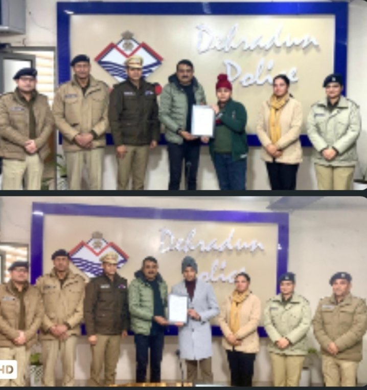 देहरादून, डालनवाला क्षेत्र में अद्भुत साहस और सूझबूझ का परिचय देते हुए एक महिला की जान बचाने वाले दो नाबालिग बच्चों को वरिष्ठ पुलिस अधीक्षक (एसएसपी) देहरादून द्वारा सम्मानित किया गया। पुलिस कार्यालय में आयोजित कार्यक्रम के दौरान एसएसपी ने दोनों बच्चों को प्रशस्ति पत्र प्रदान कर उनके साहसिक कार्य की सराहना की तथा भविष्य में भी समाज सेवा के लिए सदैव आगे रहने हेतु प्रेरित किया।