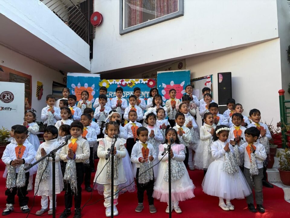 कार्यक्रम का शुभारंभ पवित्र मंत्रोच्चार के साथ हुआ, जिससे पूरा वातावरण सकारात्मकता से भर गया। प्री-प्राइमरी से कक्षा 5 तक के विद्यार्थियों ने अपनी सीखने की यात्रा को बेहद रचनात्मक ढंग से प्रस्तुत किया। नन्हे कलाकारों ने अंग्रेजी नाटकों और सुमधुर गीतों के माध्यम से अपनी अभिनय क्षमता और आत्मविश्वास का परिचय दिया।