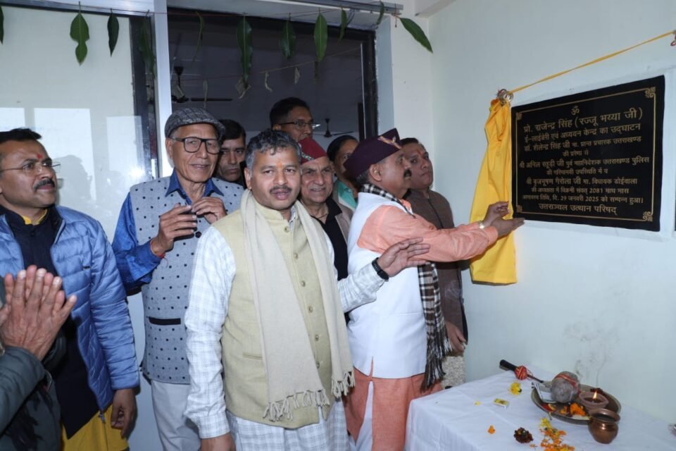 देहरादून, मौनी अमावस्या के शुभ अवसर एवं समाज सेवा एवं शिक्षा के क्षेत्र में विशिष्ट योगदान एवं समर्पित राष्ट्रीय स्वयंसेवक संघ के पूर्व सर संघचालक स्व० प्रो० राजेन्द्र सिंह (रज्जू भैय्या) की 103वीं पुण्य तिथि पर देहरादून के अलकनंदा इनक्लेव जोगीवाला रिंगरोड स्थित ‘सेवा निकेतन’ भवन के तृतीय तल में निर्मित लाइब्रेरी में उत्तरांचल उत्थान परिषद की ई-लाइब्रेरी एवं अध्ययन केन्द्र देहरादून में उद्घाटन किया गया। सर्वप्रथम कार्यक्रम के अध्यक्ष श्री बृजभूषण गैरोला माननीय विधायक डोइवाला (देहरादून),